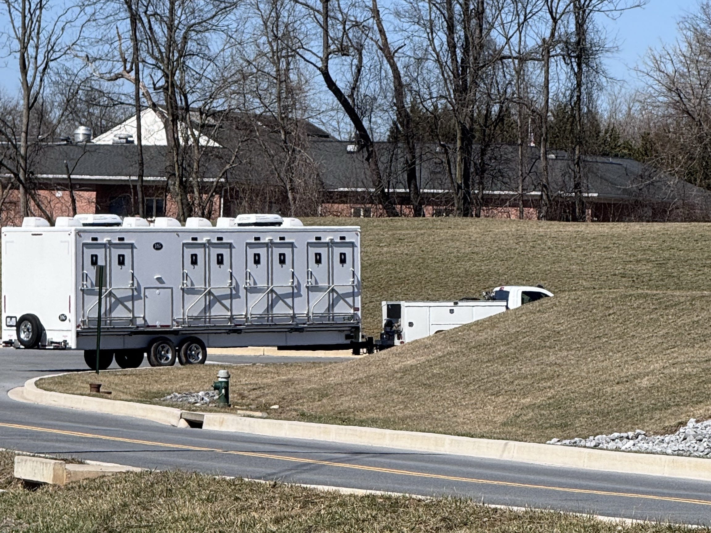 Approximately six portable restroom trailers and two water tanker trucks began arriving Monday at the Williamsport, Md., warehouse that federal immigration authorities are converting into a detention center planned to hold 1,500 people, according to photographs obtained by Project Salt Box.