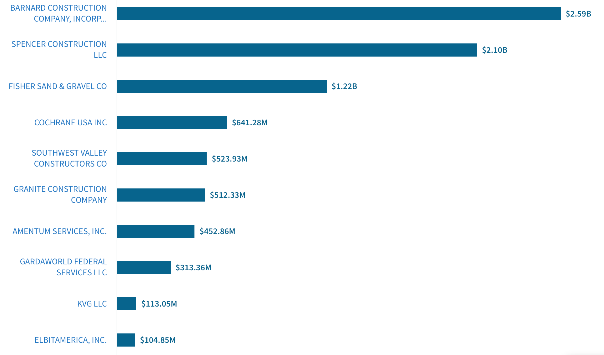 Barnard Construction, Spencer Construction, and Fisher Sand & Gravel together secured nearly $6 billion in contracts to build sections of the border wall along southern Texas. Barnard Construction received three separate awards for projects in Del Rio, Big Bend, and Hudspeth County. Fisher Sand & Gravel’s contract also covers work in the Big Bend region, while Spencer Construction will handle construction near Rio Grande City. Granite Construction and Southwest Valley Contractors were each awarded half a billion dollars for work on the Laredo Valley border wall.