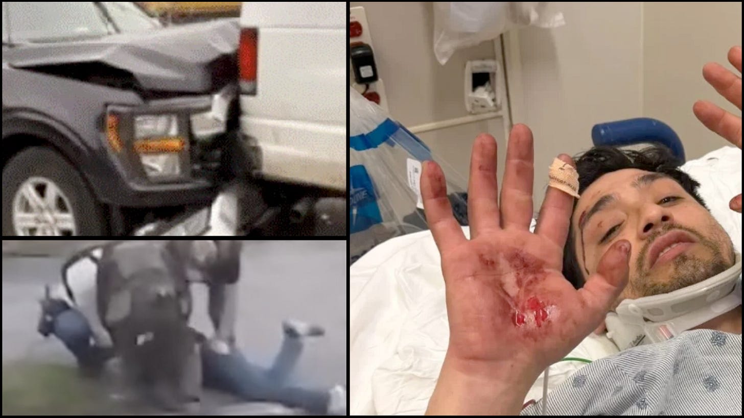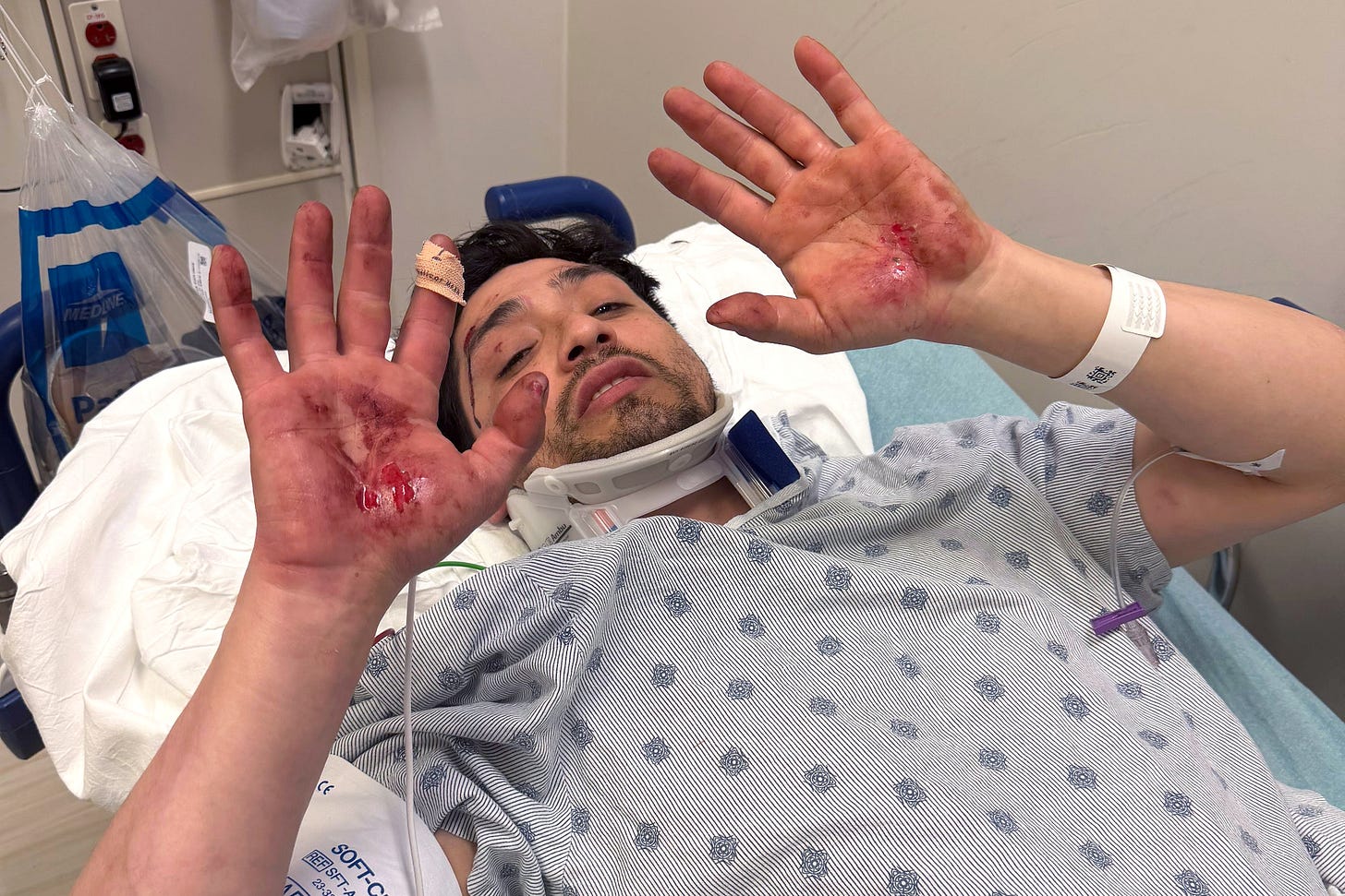His legal team says he suffered bruising and abrasions to his face, forehead, hands, abdomen and shoulder, along with an ACL sprain requiring orthopedic follow-up within two to three weeks. Some of his wounds remain open, they said.