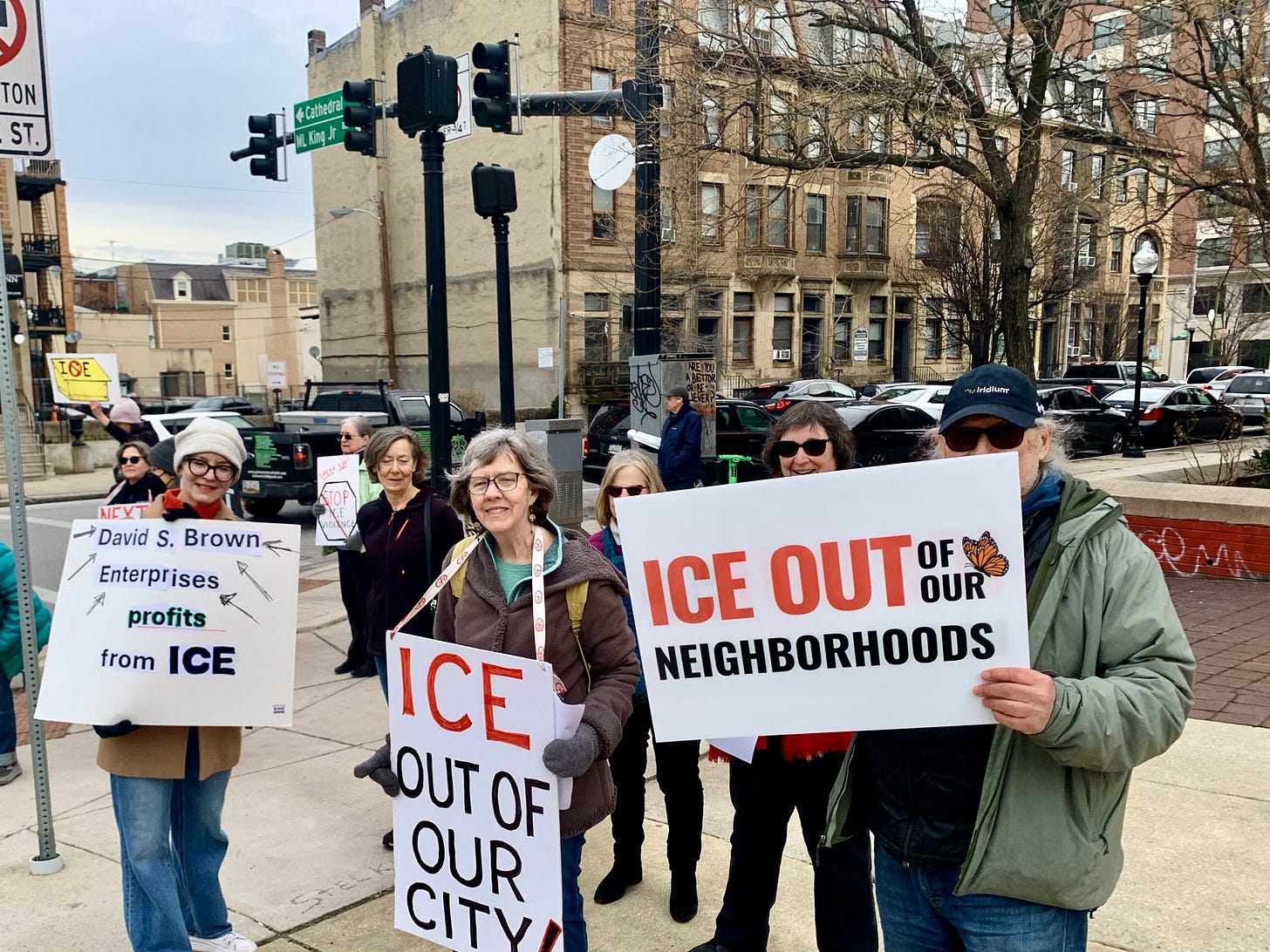 Despite the vehicles' departure, the protest proceeded Thursday morning. At least 100 demonstrators gathered at the Symphony Center garage to oppose local businesses serving as staging sites for federal immigration enforcement, said Barbara Aylesworth, an organizer with Indivisible Baltimore, in a phone call Thursday.