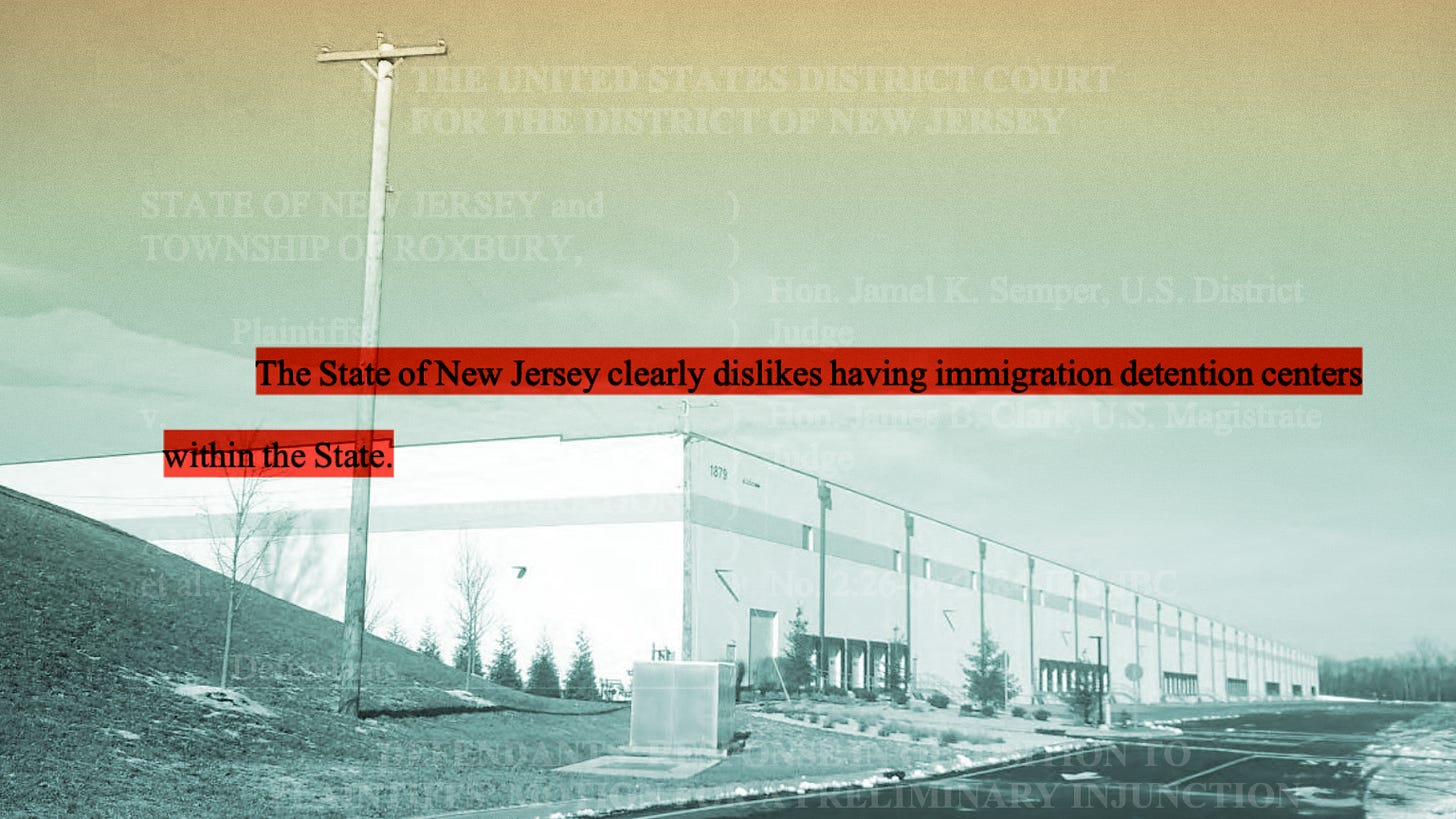 In a 36-page filing that opens by observing that New Jersey “clearly dislikes having immigration detention centers within the State,” the Department of Homeland Security asked a federal court to reject the state’s bid to halt the conversion.