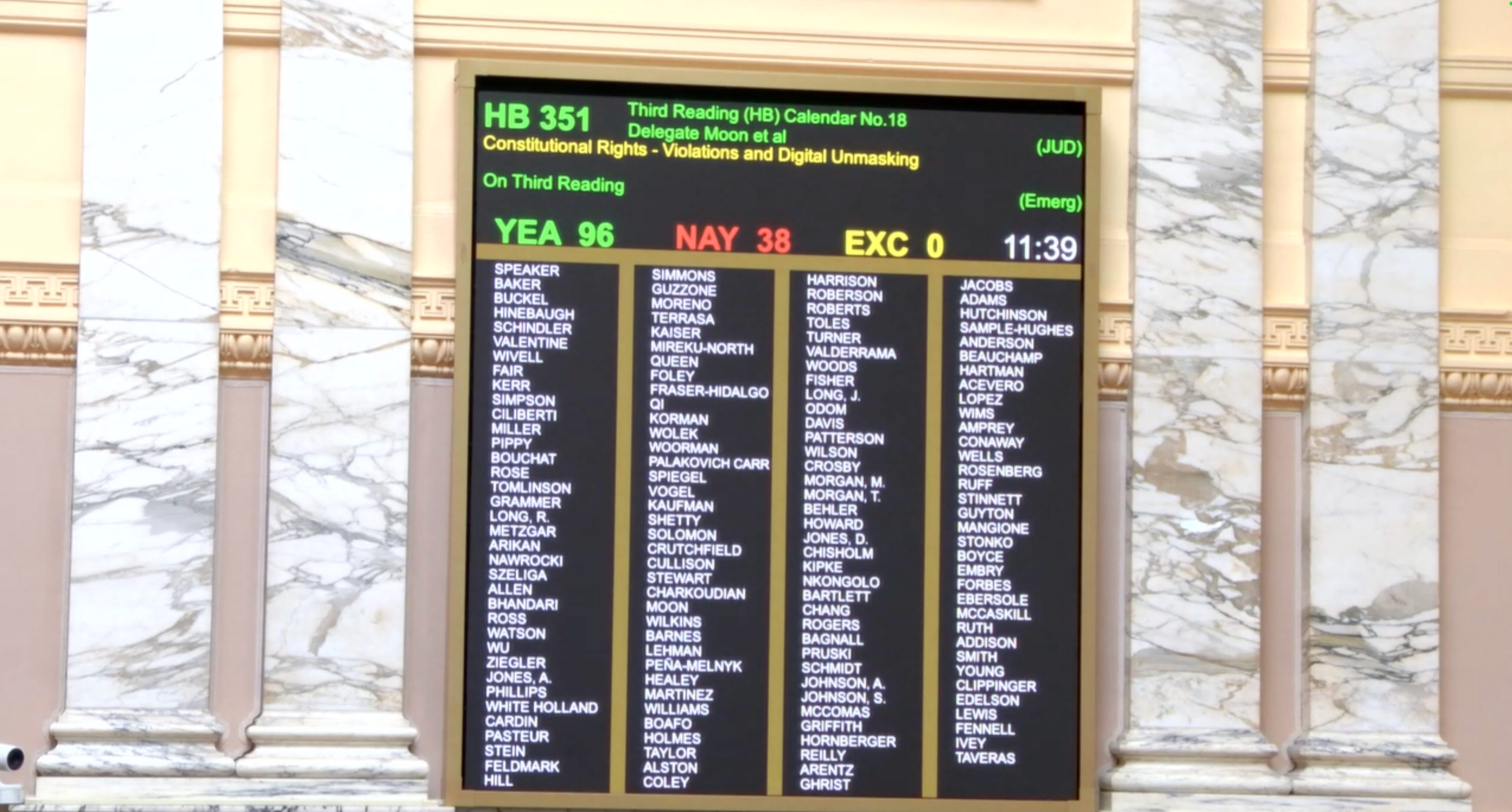 Both bills were passed as emergency measures, requiring a three-fifths supermajority. If passed in the senate, they would take effect immediately upon the governor’s signature. HB 1017 passed 98 to 36; HB 1018 passed 98 to 37.